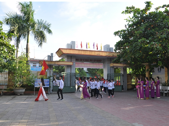 Dấu ấn trong buổi lễ khai giảng là bài phát biểu của đồng chí hiệu trưởng Lê Thị Thu Thủy.Trong bài phát biểu của mình, đồng chí đã nhấn mạnh mục tiêu của nhà trường trong năm học mới là tiếp tục đổi mới phương pháp dạy học, đổi mới kiểm tra đánh giá và thực hiện có hiệu quả các cuộc vận động, các phong trào thi đua. Trong đó, đặc biệt chú trọng giáo dục đạo đức, kỹ năng sống và giáo dục pháp luật cho học sinh. Để đạt được những thành tựu dó, nhà trường cần tiếp tục đổi mới mạnh mẽ, đồng bộ các yếu tố cơ bản của giáo dục; tạo điều kiện để học sinh phấn đấu vươn lên tự khẳng định mình, lập thân, lập nghiệp, là công dân tốt. Mỗi thầy giáo, cô giáo tiếp tục rèn luyện, đẩy mạnh ứng dụng các phương pháp giáo dục hiện đại, luôn là tấm gương sáng cho học sinh noi theo.