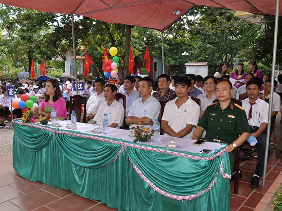 Đến dự lễ khai giảng với nhà trường là các cán bộ thuộc cơ quan liên ngành, cán bộ thuộc các cấp chính quyền Đảng, địa phương. Đồng chí Lê Thị Thu Thủy- phó Bí thư chi bộ, hiệu trưởng nhà trường đã thay mặt toàn thể giáo viên và học sinh của trường nhận những bó hoa tươi thắm và những lời chúc mừng từ khách mời.